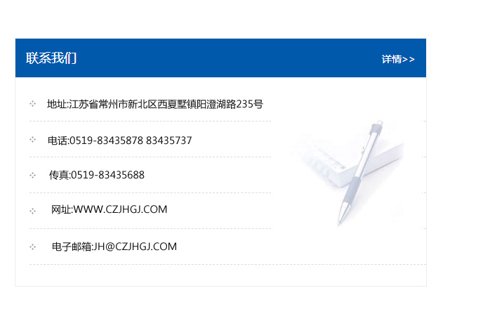 地址:常州市新北區友邦商務大廈1幢16、17層  電話:0519-85101652  傳真:0519-85112595  郵編:213022  網址:www_cz-jiayue_cn.grlzg.com  郵箱:xiajifengaa@163.com